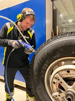 Pavlo er en av våre dyktige dekkmontører som jobber målrettet mot akkurat dette. Gi han et dekk, og det er nesten i bedre stand enn før du punkterte.
